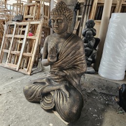 Esta imponente estatua de Buda de 1.5 metros representa la serenidad y la paz interior a través de su profunda meditación en la Estupa. Con un acabado en oro antiguo, esta pieza refleja la riqueza espiritual de la cultura oriental, mientras transmite una sensación de calma y reflexión. Su tamaño monumental y su presencia robusta la convierten en una pieza central perfecta para cualquier espacio.El Buda está representado en postura meditativa, simbolizando la calma y la iluminación, un recordatorio constante de la paz que se encuentra dentro de cada ser. El diseño detallado y el acabado en oro antiguo brindan una apariencia elegante, ideal para entornos dedicados a la meditación, el bienestar o la decoración espiritual.Cada pieza es meticulosamente elaborada en un taller artesanal en las afueras de Yogyakarta, Java, donde equipos especializados de artesanos funden las estatuas usando una mezcla de concreto y resina fibrosa, logrando una pieza duradera con un acabado realista. El proceso de producción es complejo y detallado, asegurando que cada estatua sea única.Características del producto:Tamaño: 1.5 metros de altura, perfecta para un impacto visual impresionante.Material: Combinación de concreto y resina fibrosa con acabado en oro antiguo.Hecho a mano en Java por artesanos altamente especializados.Ideal para: Espacios de meditación, jardines, templos, spas, y decoración de interiores con un toque espiritual.El Gran Buda de Oro Antiguo Meditación en Estupa es la elección perfecta para quienes buscan añadir una pieza única que inspire paz y armonía en su tienda online.